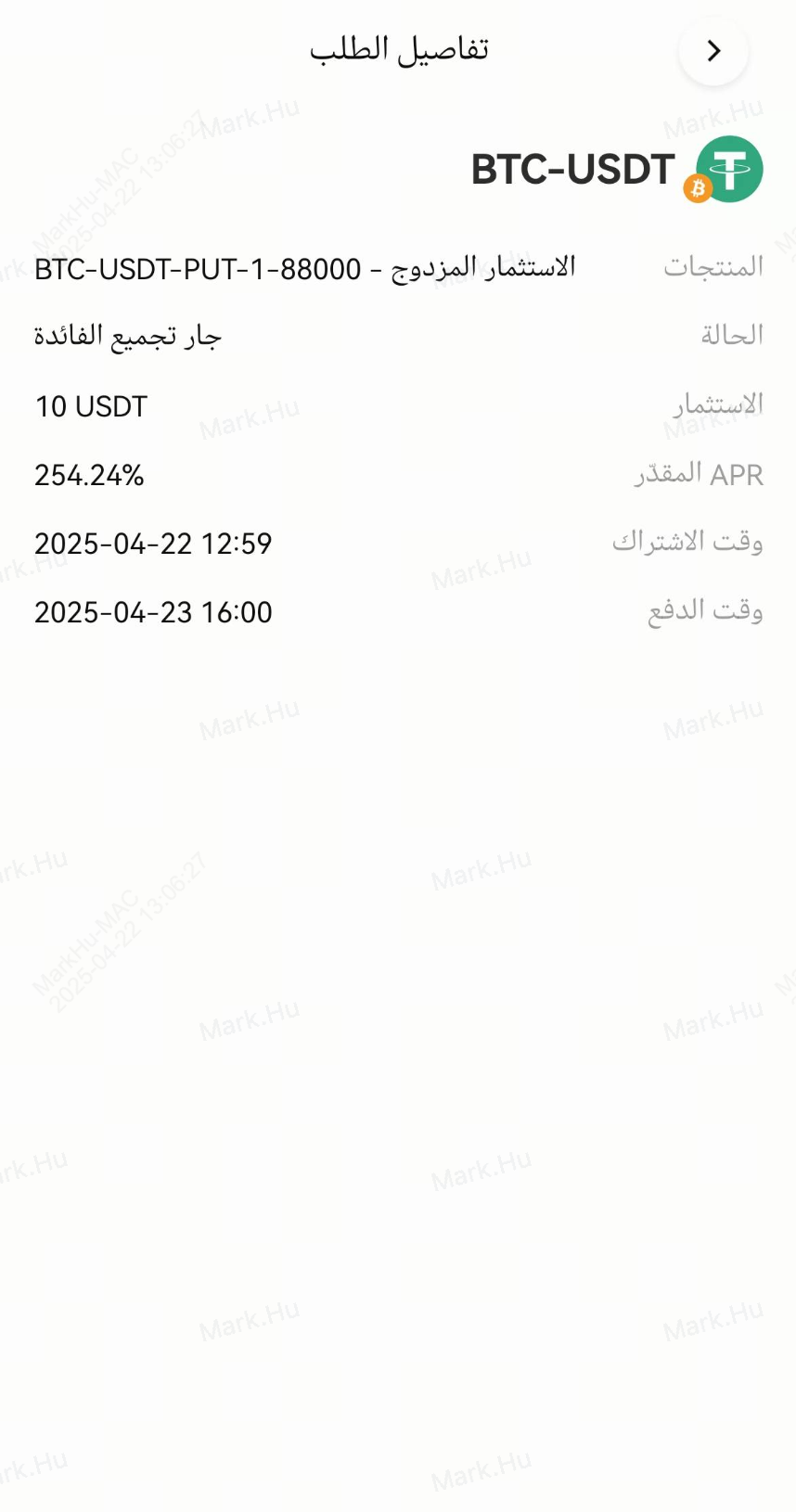 - عند التسوية، إذا كان سعر BTC > السعر الهدف، فستحتفظ بمقتنياتك من USDT وستتلقى الفائدة المستحقة.