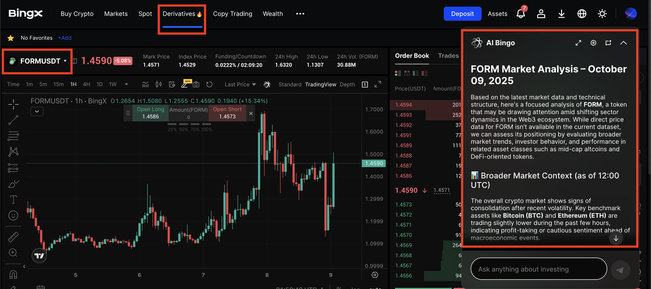 FORM/USDT perpetual contract on BingX futures powered by AI Bingo insights