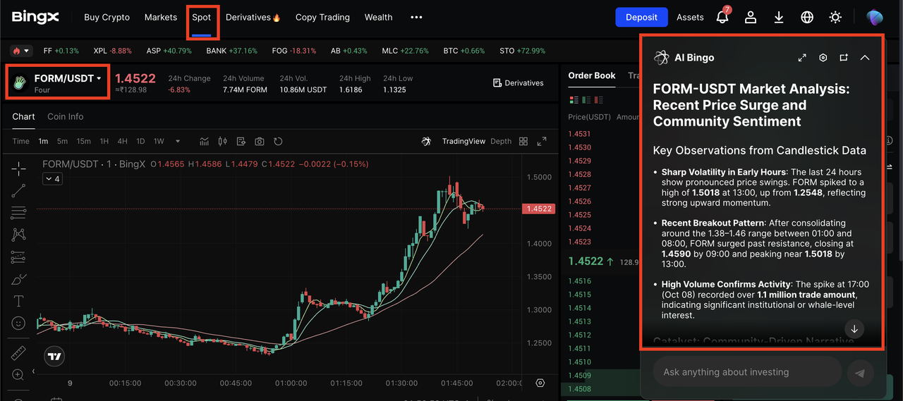 FORM/USDT trading pair on the spot market powered by BingX AI