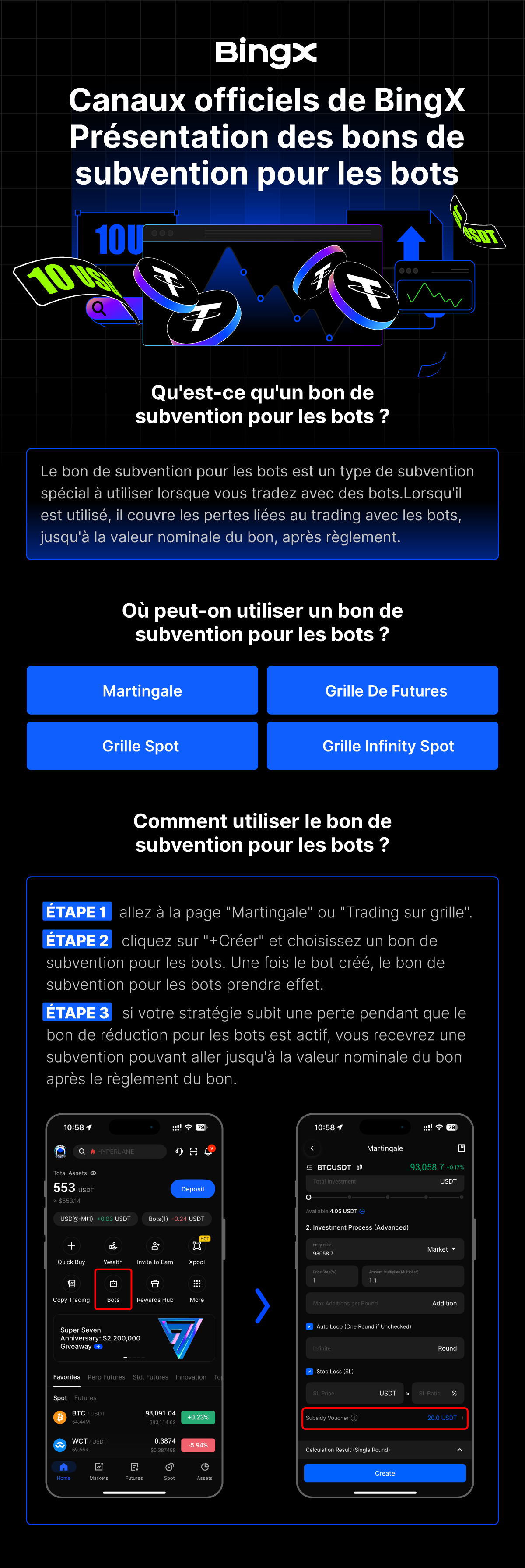 *Le bon de subvention de bots est réservé au trading avec des bots autonomes.