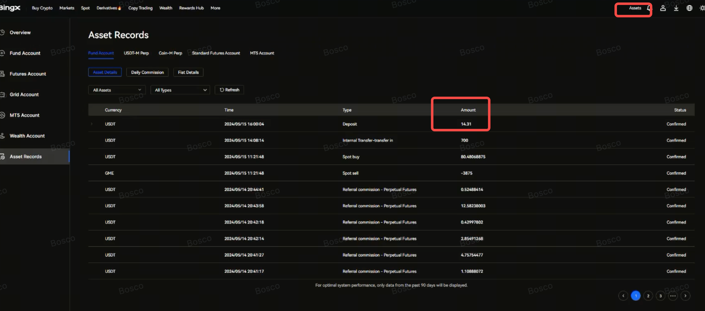 4. Po przetworzeniu płatności szczegóły zlecenia zostaną wyświetlone, jak pokazano poniżej. Kryptowaluta zostanie przelana na konto BingX i będziesz mógł ją sprawdzić w rejestrze aktywów.