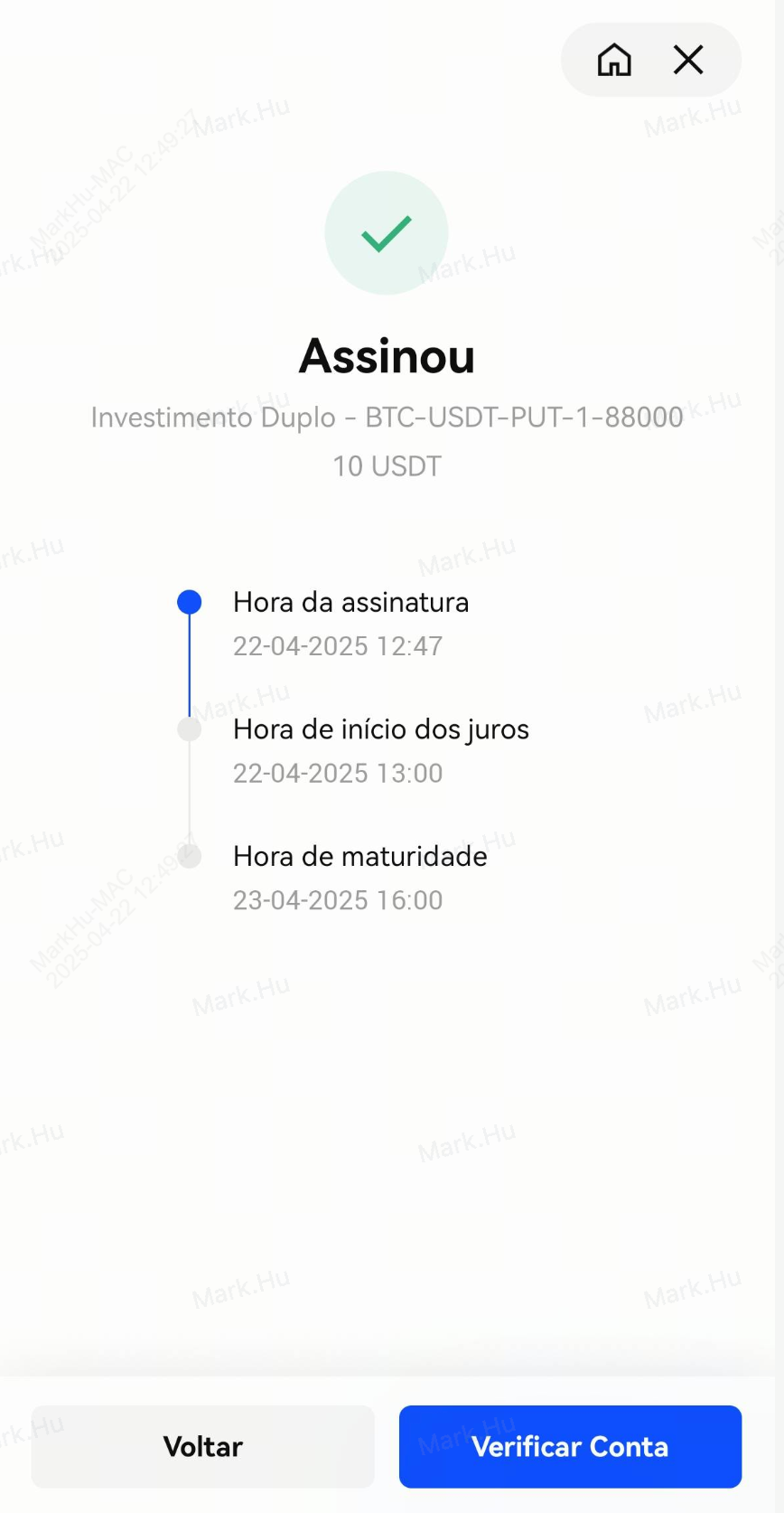 4. Após a assinatura, clique em "Ver Ordem" ou vá até "Ativos" para visualizar os detalhes da ordem do seu produto de Investimento Duplo assinado.