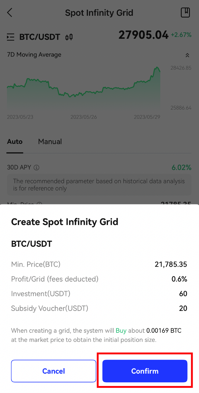 Voucher Trợ Cấp Bots là một dạng bảo hiểm dùng cho giao dịch Bots. Sau khi chọn dùng Voucher Trợ Cấp Bots, người dùng sẽ nhận được bồi thường tương ứng cho thua lỗ phát sinh ở giao dịch Bots (nếu có) sau khi quyết toán voucher. Mức chi trả tối đa là mệnh giá của voucher đang dùng.(Tính năng này chỉ hỗ trợ cho phiên bản V3.51.0 trở lên)