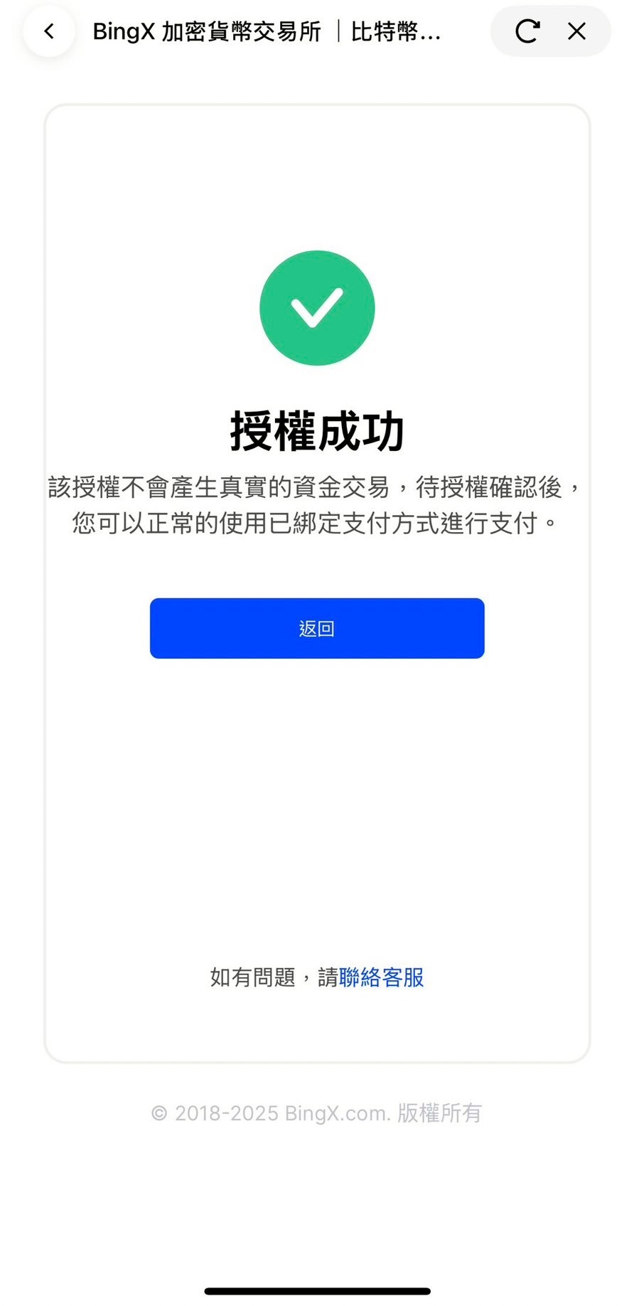步驟六:購買成功後,您將看到如下圖的畫面提示。請稍候 5–10 分鐘,即可查詢充值成功訊息。